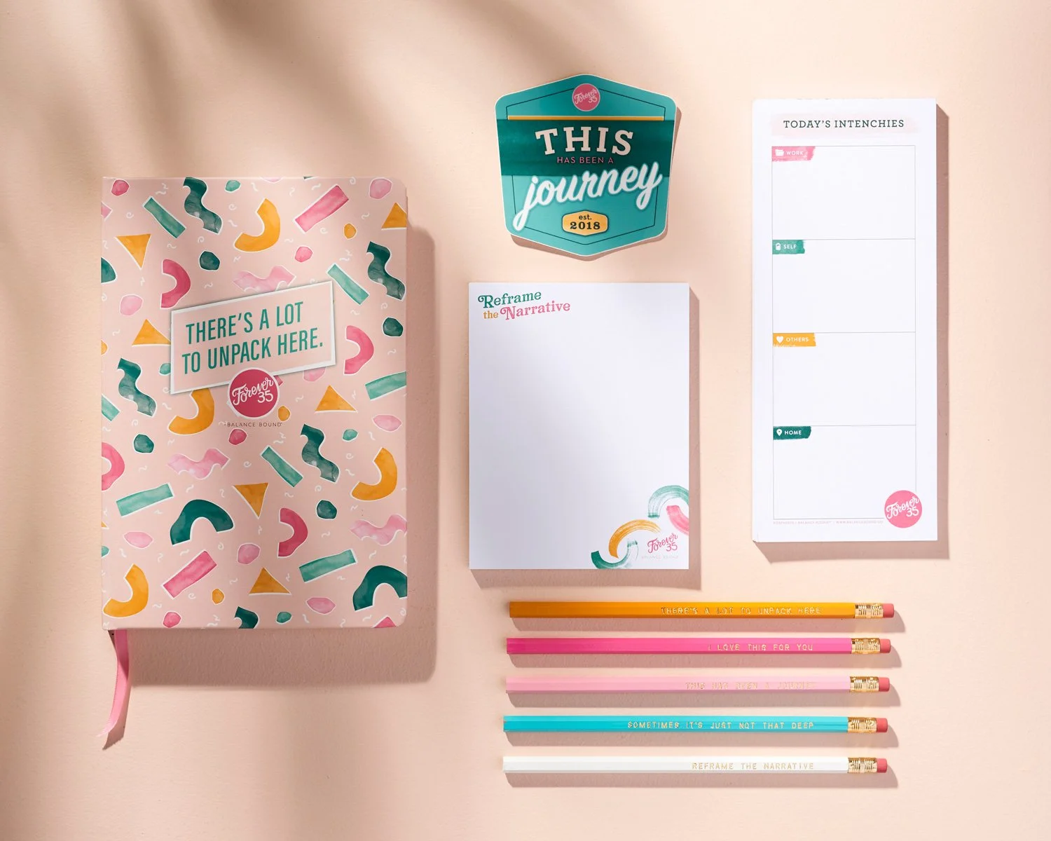 We've partnered with our favorite self-care podcast, Forever35, to bring you all the Kate- and Doree-isms you love in a charming and useful collection of journals, notepads, stickers, and more.